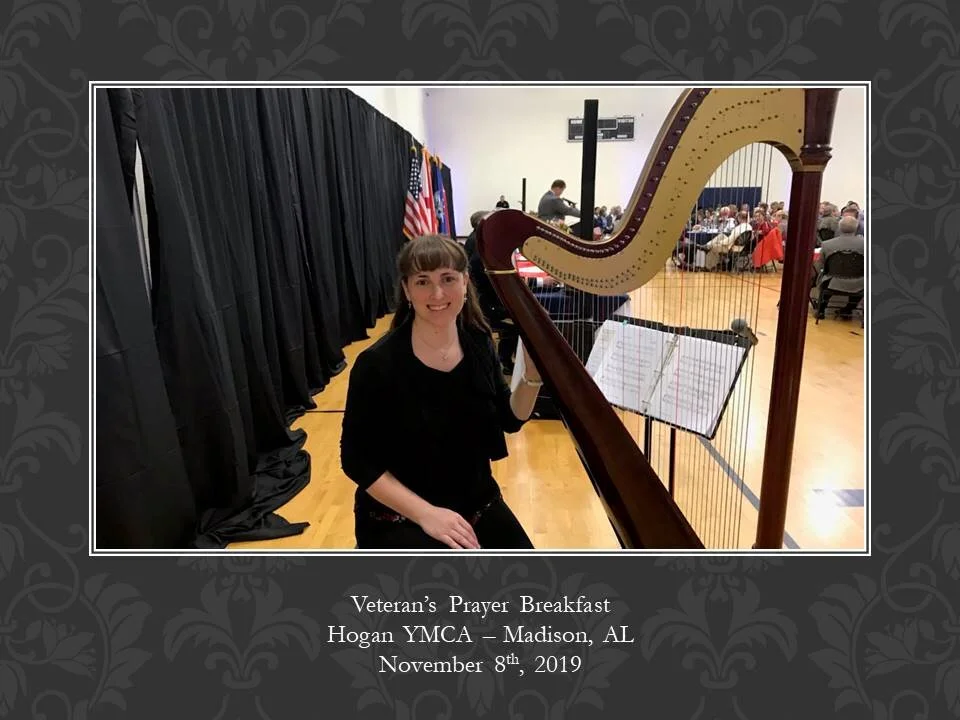 Olivia dreamed of becoming a professional harpist ever since she first saw a harp on a family vacation to Dollywood at 5 years old. After years of dreaming and hard work, she purchased a lever harp and began taking harp lessons from Katherine Newman at 14 years old. She studied harp all through high school, graduated, and began pursuing a music performance degree with Emily Waggoner at Bob Jones University in Greenville, SC. After completing her freshman year, Olivia transferred back home to the University of Alabama in Huntsville to continue studying under Ms. Newman’s tutelage. Olivia graduated Summa Cum Laude with a B.A. in Music Performance, harp emphasis in 2017.